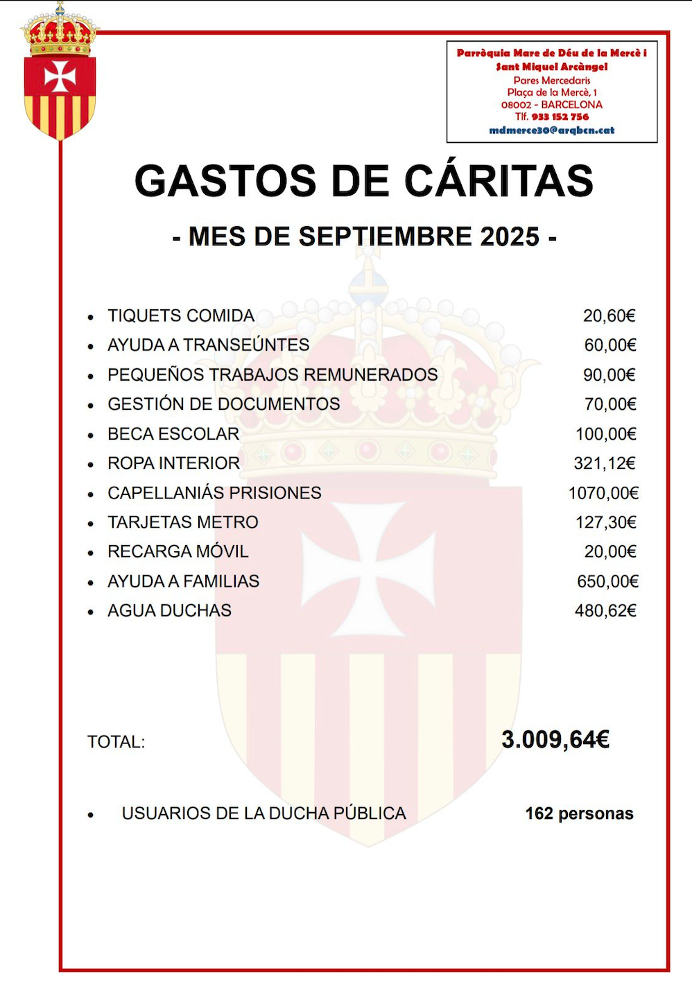 GASTOS DE CÁRITAS DE SEPTIEMBRE 2025