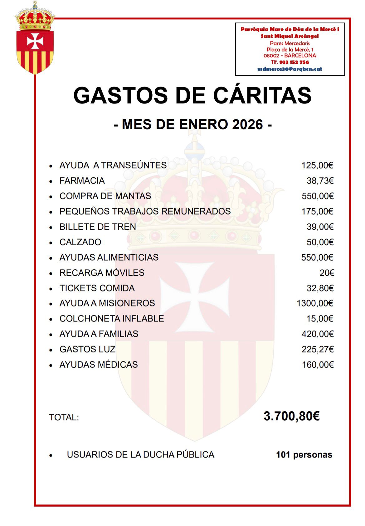 GASTOS DE CÁRITAS DE ENERO 2026